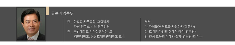 ¡®Çϸð´ÏÀÇ È¿¡¯°¡ Çö´ë ¸®´õ½ÊÀÇ ¼º°ø¿äÀÎÀ̶ó´Â ÀÌÀ¯´Â, ¾î¶² À¯ÇüÀÇ ¸®´õ½ÊÀÌµç ¸®´õ¿Í ÆÈ·Î¾î, »óȲÀ̶ó´Â ¼¼ ±¸¼º¿ä¼Ò°¡ ³»¸éÀûÀ¸·Î Çϸð´Ï¸¦ ÀÌ·çÁö ¾Ê°í¼´Â Á¶Á÷ÀÌ Ãß±¸ÇÏ´Â È¿À²¼º°ú È¿°ú¼ºÀ» ÀÌ·ï³¾ ¼ö ¾øÀ¸¸ç, ±× Çϸð´Ï´Â °ð Àΰ£°ü°è·Î À̾îÁø´Ù´Â Á¡ ¶§¹®ÀÌ´Ù. È¿´Â º»µð µ¿½É¿ø(ÔÒãýê)ÀÇ ¿ø¸®·Î ÀÛ¿ëµÊ¿¡ µû¶ó ³ª¿Í °¡Á·ÀÇ Çϸð´Ï°¡ ģģ¾ÖÀÎ(öÑöÑäñìÑ)À¸·Î À̾îÁ® ³Ð°Ô È®»êµÈ´Ù. ±×·¡¼ È¿¸¦ Á¼°Ô´Â °¡Á·»ç¶û, °¡Á¤À±¸® µî °¡Á·±¸¼º¿ø °£ÀÇ Çϸð´Ï·Î ÇØ¼®ÇÏÁö¸¸, ³Ð°Ô´Â ¼¼´ë°ø°¨À» ºñ·ÔÇÑ ½º½Â°ú ¾î¸¥, Á¦ÀÚ¿Í ¾î¸°ÀÌ, ÀÌ¿ô°ú »çȸ, ³ª¶ó¿Í ÀÚ¿¬ µî°úÀÇ Çϸð´Ï·Î È®´ëÇÏ¿© ÇØ¼®ÇÑ´Ù. ±×·¡¼ È¿´Â Taekwondo(űǵµ)³ª Kimchi(±èÄ¡)ó·³ ¿ì¸® ¹ßÀ½ ±×´ë·ÎÀÎ HYO(È¿)·Î Ç¥±âÇϸç, ÀÌ´Â Harmony of Young & OldÀÇ À̴ϼÈÀÌ´Ù. ±×·¡¼ HYO´Â Filial piety(È¿µµ)¿Í´Â ´Ù¸¥ °ÍÀÌ´Ù.